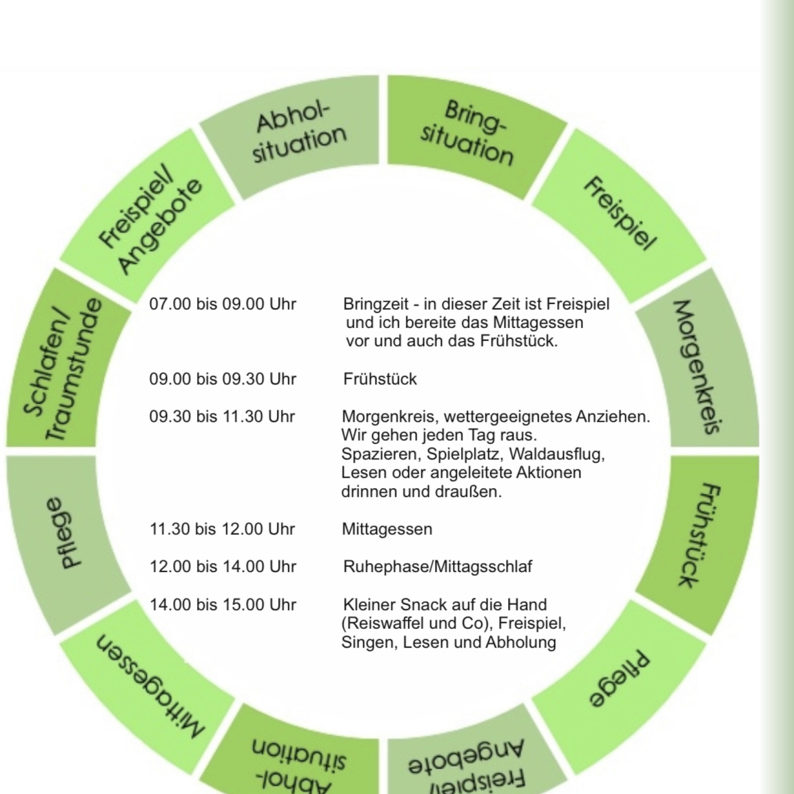 Beim Abholen ist es mir aber ein Anliegen, kurz mit den Eltern über den Tag zu sprechen sowie Vorkommnisse und Beobachtungen weiterzugeben, damit auch ihr als Eltern wisst, was euer Kind an diesem Tag gemacht hat. Da ich selbst erfahren habe, wie bedrückend z.B. ein Arbeitstag nach einer nicht ganz optimalen Verabschiedung mit Weinen ist, gebe ich gerne eine kurze Rückmeldung, wenn das Kind sich beruhigt hat. Hierzu bieten sich die modernen Medien wie SMS und Co. an. Wenn erwünscht, halte ich euch auch gerne gelegentlich mit kurzen Updates der Kinder auf dem Laufenden. Und besonders wichtige Entwicklungsschritte wie die ersten Schritte oder Wörter halte ich in Bild und Ton für euch fest. Einmal im Jahr möchte ich die Kinder und ihre Familien zu einem Sommerfest einladen. Dies soll das gegenseitige Kennenlernen der Kinder und ihrer Familien fördern.